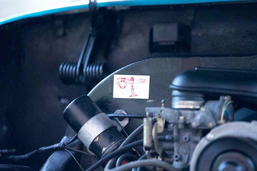 Mr. Biggins was meticulous about the care for his beloved Karmann Ghia and had it regularly serviced repaired and tuned up and that’s reflected in how well the All original 1600cc dual port Powers the car. Repair receipts exist for almost 20 years in the name of Mr. Biggins at reputable and local Volkswagen repair shops in Inglewood and nearby Downey.
